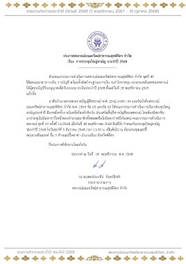 เรื่อง การประชุมใหญ่สามัญ ประจำปี 2568