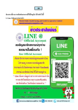 39 ช่องทางที่สามารถติดต่อสหกรณ์ได้ปัจจุบัน มีดังต่อไปนี้ 1. Line Official สหกรณ์ฯ