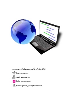 47 หมายเลขโทรศัพท์ของสหกรณ์ที่สมาชิกติดต่อได้ โทร. 056-990-359 แฟกส์. 056-990-360 มือถือ. 088-278-6711 E-mail : phichit_coop@hotmail.com