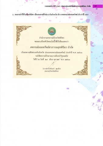 ี รายงานประจ าป 2563 /สหกรณ์ออมทรัพย์สาธารณสุขพิจิตร จ ากัด 127 ์ ่ ็ ั ์ ์ ั ี ์ ้ 2. สหกรณฯไดรบเกียรติบัตร เปนสหกรณดีเดนระดับจังหวัด ประเภทสหกรณออมทรพย ประจ าป 2563