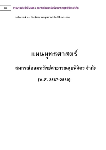 192 ระเบียบวาระที่ 4.6. เรองพิจารณาแผนยุทธศาสตรประจ าป 2567 – 2569 ่ ื ี ์ แผนยุทธศาสตร์ สหกรณออมทรัพย์สาธารณสุขพิจิตร จ ากัด ์ (พ.ศ. 2567-2569)