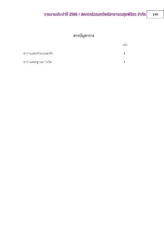 195 สารบัญตาราง หน้า ตารางแสดงจำนวนสมาชิก 4 ตารางแสดงฐานะการเงิน 4