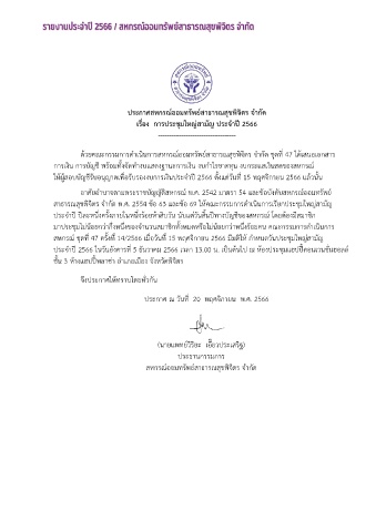 เรื่อง การประชุมใหญ่สามัญ ประจำปี 2566
