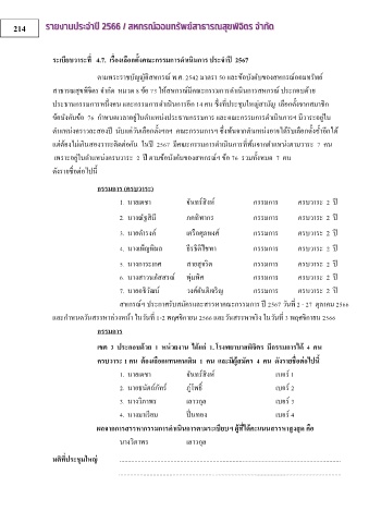 แต่ต้องไม่เกนสองวาระตดตอกัน ในป 2567 มีคณะกรรมการด าเนนการทพ้นจากต าแหนงตามวาระ 7 คน