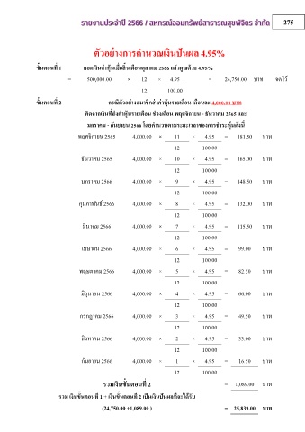 ตัวอยางการค านวณเงินปนผล 4.95%